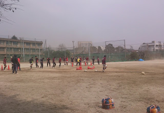 グランドには雪がまだ残っていましたが、
