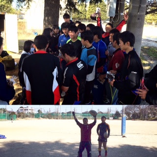 写真はスクラムハーフ用の筋トレ後のパス伝授の様子です!( •̀ω•́ )/