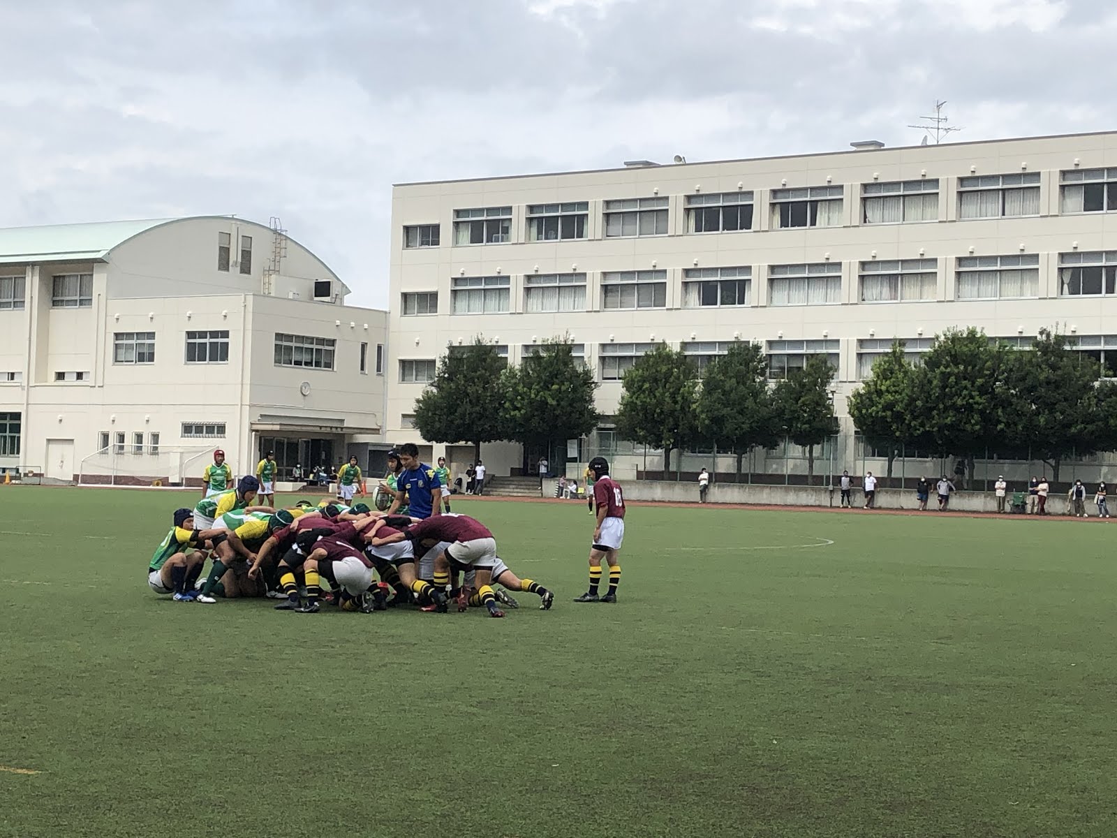 個性的なメンバーが多くいろいろな問題が起こりましたが、矢崎組は順調に成長しました。日々のコンタクト練習でディフェンス力を上げ、新人戦で7年ぶりのベスト4に入りました。3位決定戦の専大松戸高校戦は前半の入りがよく、健闘しましたが、後半にタックルが甘くなり突き放されました。敗れたとはいえ、通用した部分も多く、自信をつけた大会となりました。春の関東予選で、 久々の関東大会出場を目標に頑張っていこうと思っていた矢先に、コロナ渦が起こりました。
