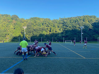 試合開始後すぐにトライを決めましたが、ノックオンなどのミスが多く見られたり、1対1の場面でなかなか止められなかったりと課題が多くありました。しかし、1年生の活躍が光る場面があり、練習試合のたびに成長する姿はとても良かったです!